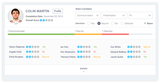 Gain insight into personalities and cultural fit and then share your favourite candidates with hiring managers and other stakeholders for their feedback.